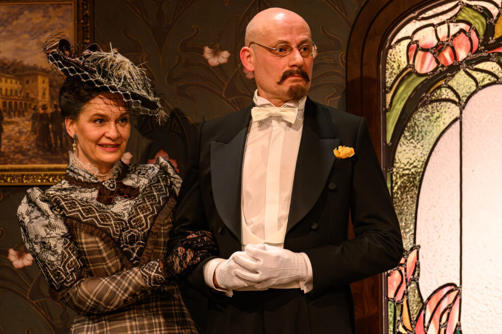 Najnowszą realizację w Och-Teatrze wyróżnia – oprócz precyzyjnej reżyserii i dyscypliny aktorskiej i choreograficznej (Emil Wesołowski) zespołu – dopracowany przez Jandę i Majewskiego tekst Bałuckiego (świetny zabieg ze słowniczkiem wyjaśniającym znaczenie przestarzałych określeń, który widzom prezentuje przed I i II aktem głos Krystyny Jandy), niezła scenografia Zuzanny Markiewicz wykorzystująca wyjątkowość przestrzeni teatru przy Grójeckiej (aktorzy muszą grać na scenie usytuowanej pomiędzy dwoma widowniami znajdującymi się po dwóch stronach) i piękne kostiumy Tomasza Ossolińskiego (szczególnie wykwintne suknie!) dopełnione gustownymi kapeluszami (autorstwa modystki Marty Galik).
