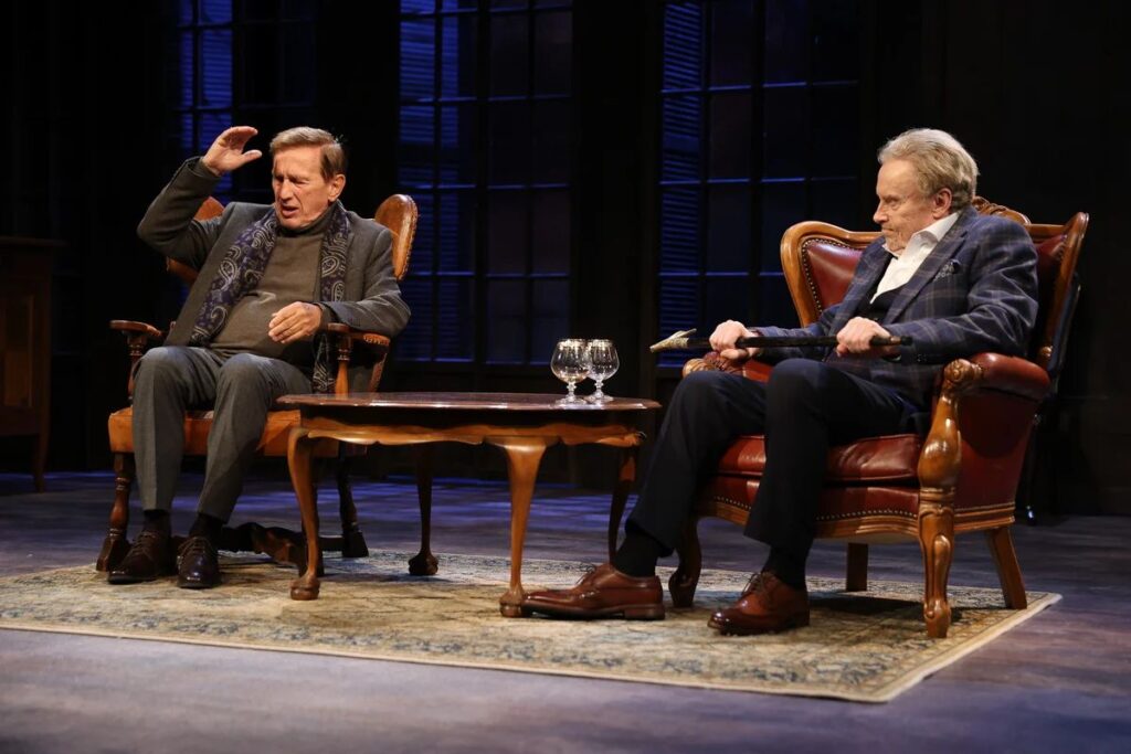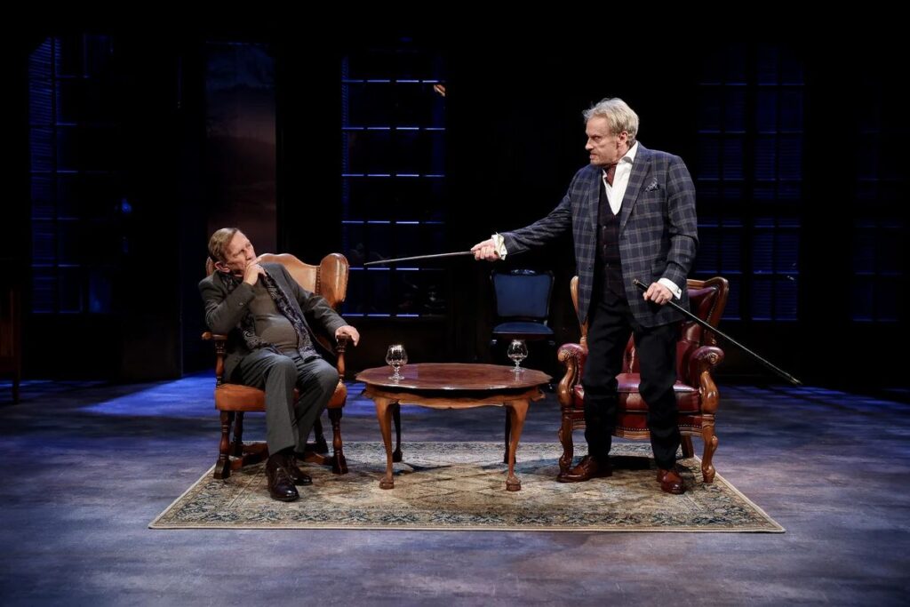 Przedstawienie w Polonii ma dobrze opracowaną przez scenografa Wojciecha Stefaniaka oprawę. Półmrok i żar w kominku dają wystarczającą scenografię do tego co się dzieje na scenie. Zresztą w Polonii oglądaliśmy już podobny pojedynek przy minimalnej scenografii, gdzie kluczowe były kreacje aktorskie. Mowa oczywiście o „32 omdleniach” Antoniego Czechowa. Tam na scenie królowała Krystyna Janda, Jerzy Stuhr (zm. w 2024 r.) i na zmianę Ignacy Gogolewski (zm. w 2022 r.), Jerzy Łapiński (zm. w 2020 r.) i Stanisław Brejdygant.